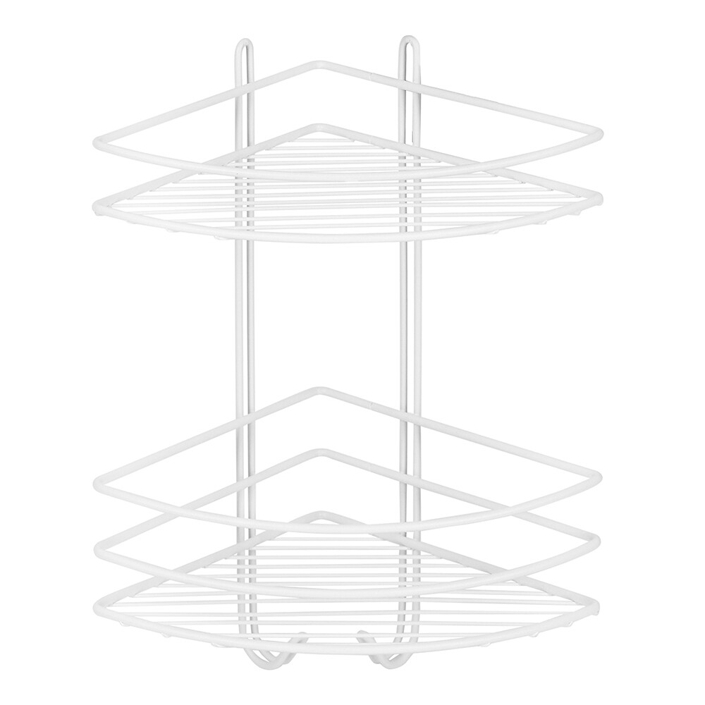 Полка для ванной Металаксон Drop угловая двухъярусная с крючками 200х200х385 мм металл белая (48991-2БМ)