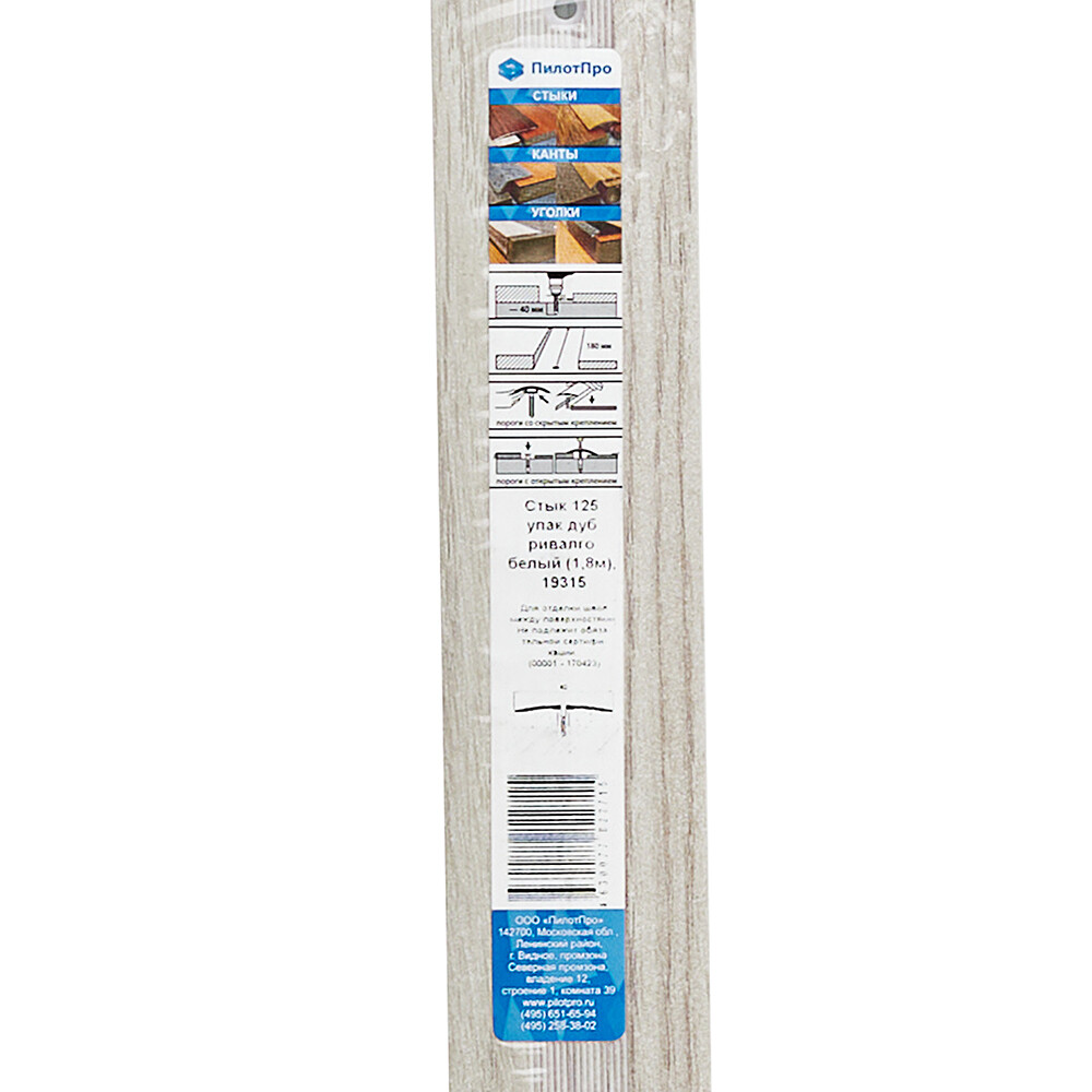 Порог алюминиевый одноуровневый стык 40х1800 мм дуб ривалго белый