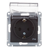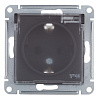 Розетка Systeme Electric AtlasDesign Aqua встраиваемая карбон со шторками с крышкой (ATN441046)