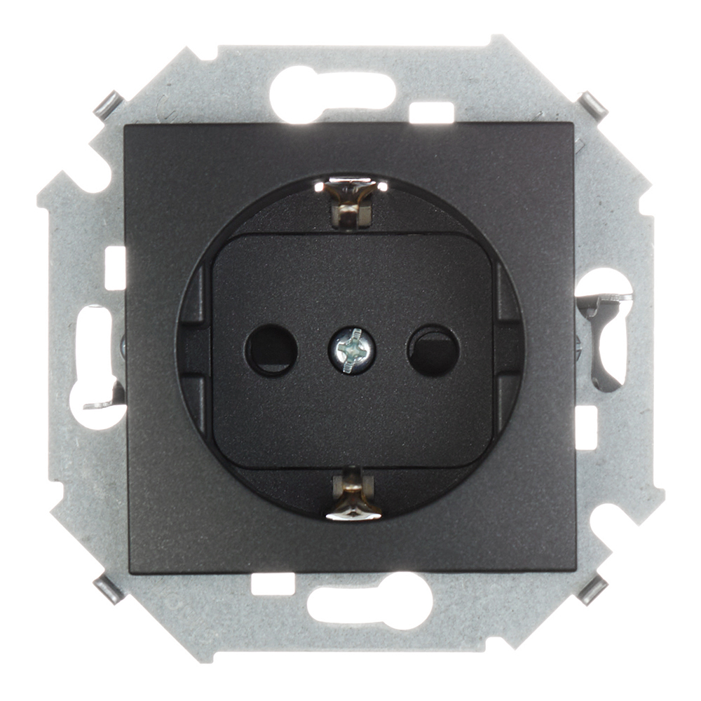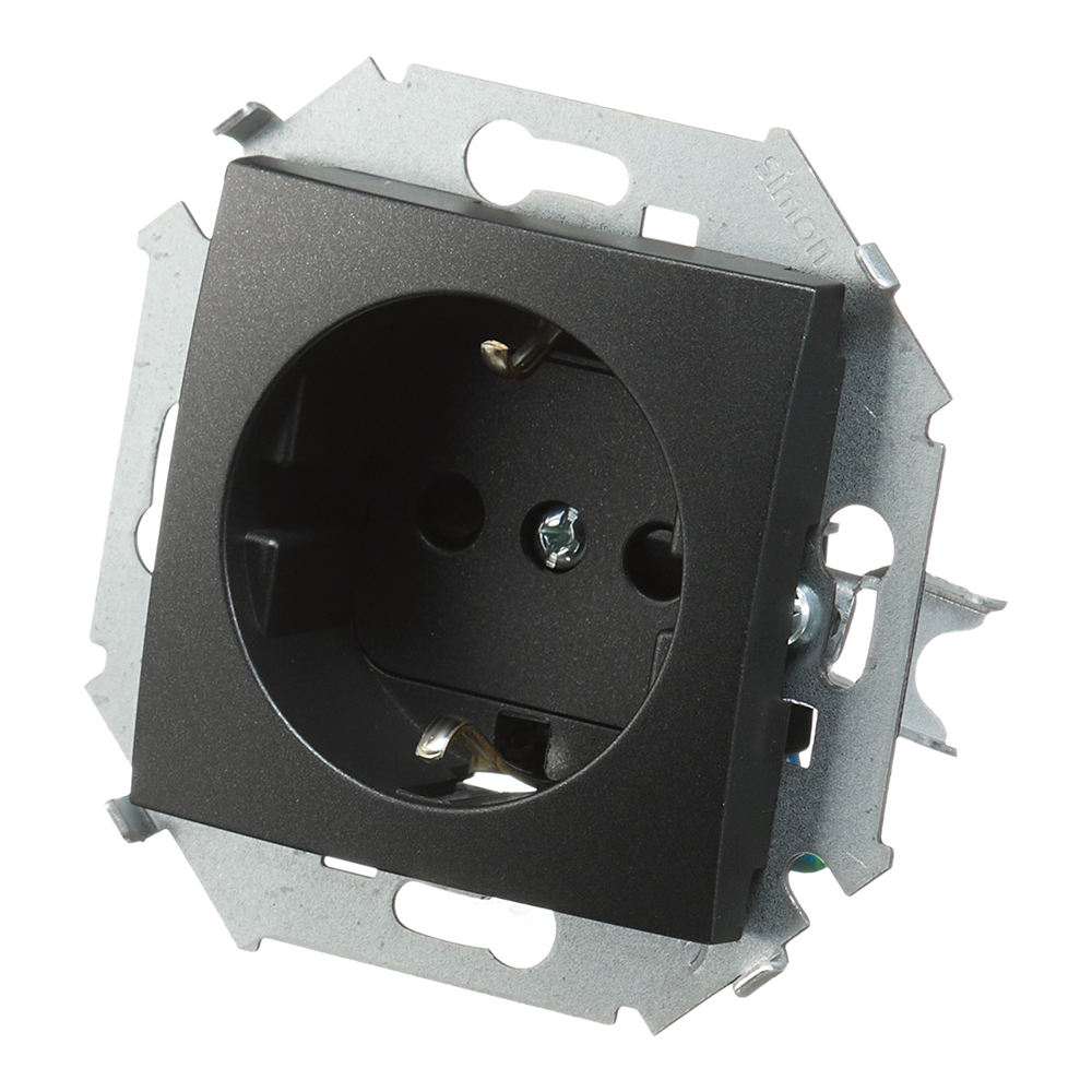 Розетка Simon 15 встраиваемая графит со шторками (1591443-038)