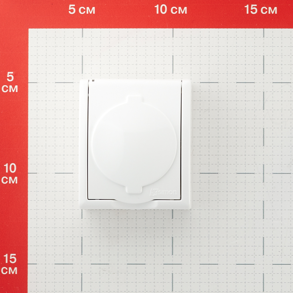 Розетка Simon 15 Aqua накладная белая с крышкой (1594445-030)