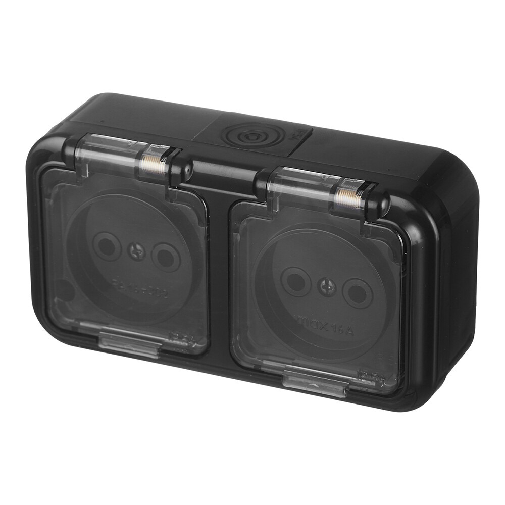 Розетка Svet накладная черная с крышкой (EV 0366-6521)