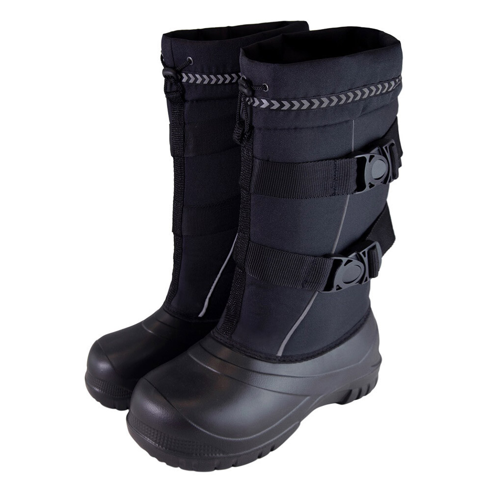 Сапоги выполнены из водоотталкивающей ткани, что делает их идеальным выбором для активного образа жизни. Съемный вкладыш из фольгированного полотна обеспечивает дополнительную защиту от холода, а двойная система креплений позволяет надежно зафиксировать ногу и предотвратить попадание влаги.