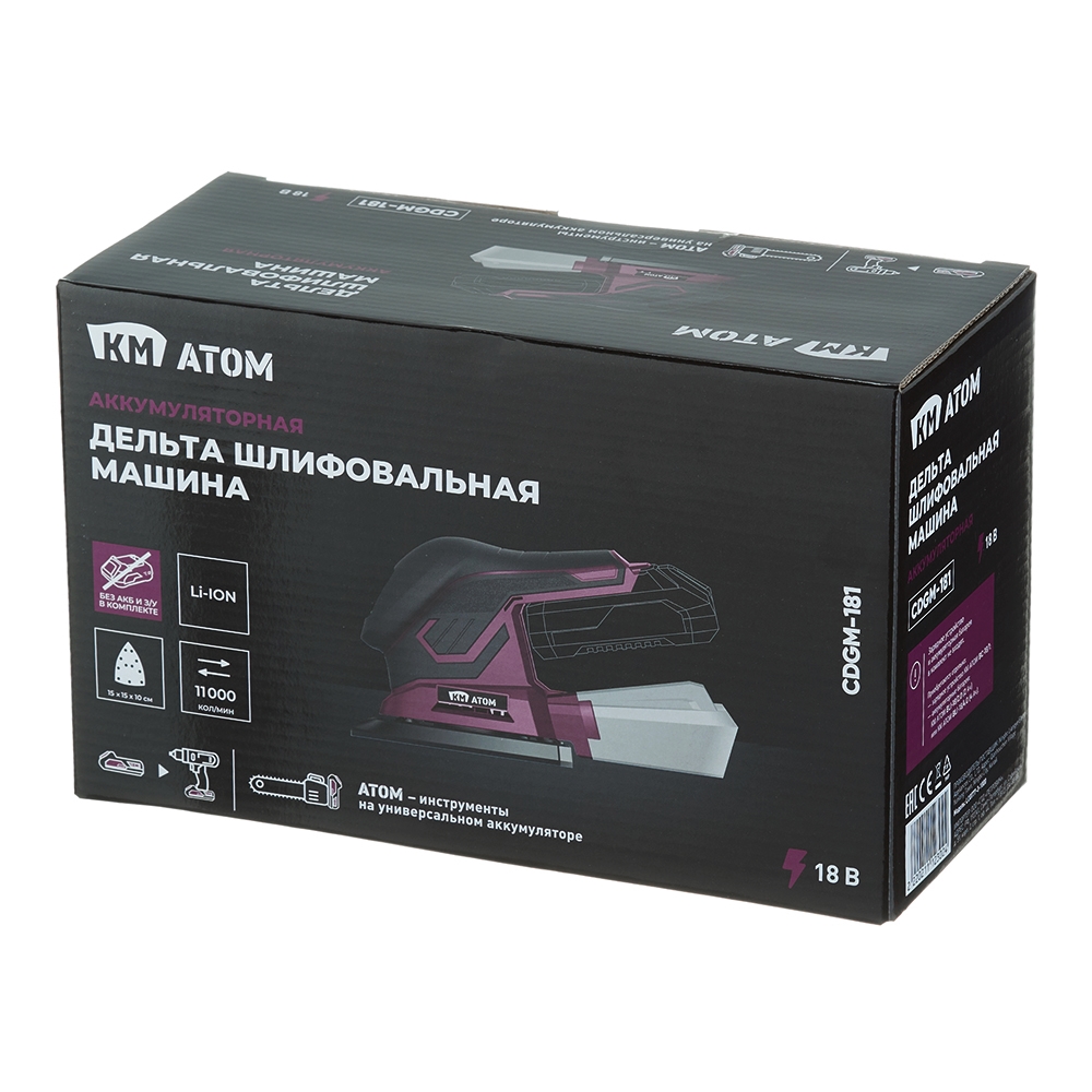Шлифмашина вибрационная аккумуляторная КМ АТОМ 18 В 150х100 мм без АКБ и ЗУ (CDGM-181)