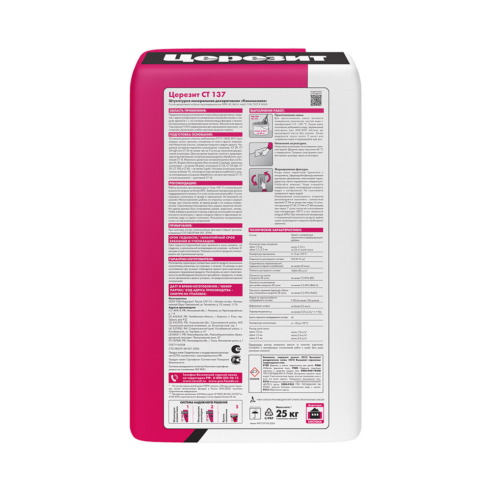 Штукатурка декоративная Церезит СТ 137 Камешковая 2,5 мм под покраску 25 кг