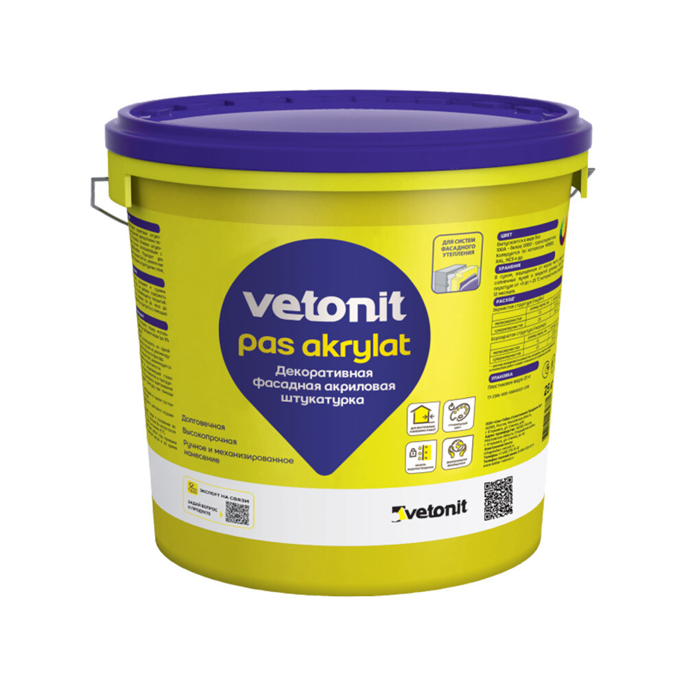 Штукатурка фасадная Vetonit Weber.pas Akrylat акриловая шуба 2 мм база 100А белая 25 кг