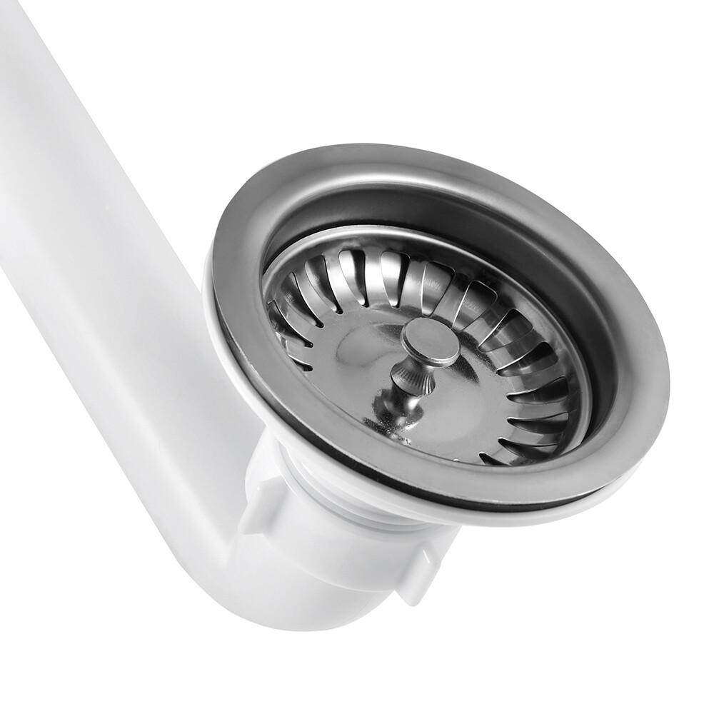Сифон для двойной мойки АНИ пласт 3 1/2х40 мм со смещением с выпуском d115 мм с переливом с соединением 40 мм (LD0515SA15)