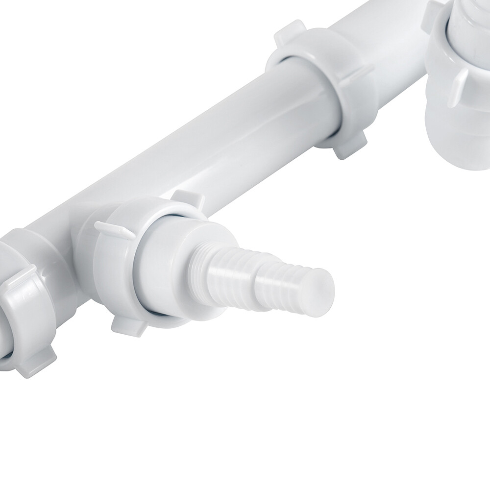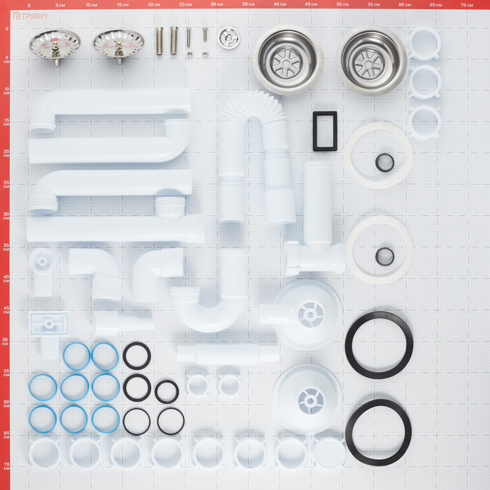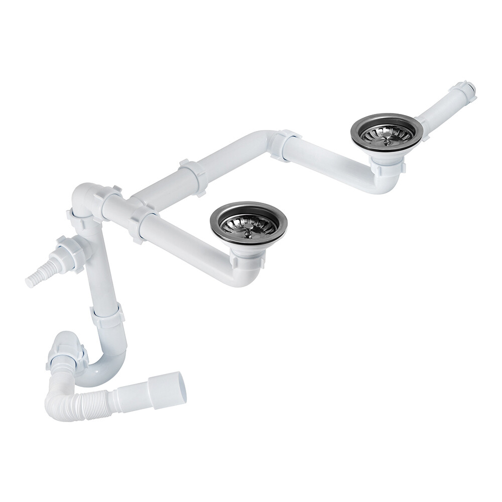 Комплектация: Сифон смещенный двойной с выпусками и отводом под стиральную машину, гофротруба 40х40/50 мм, упаковка.