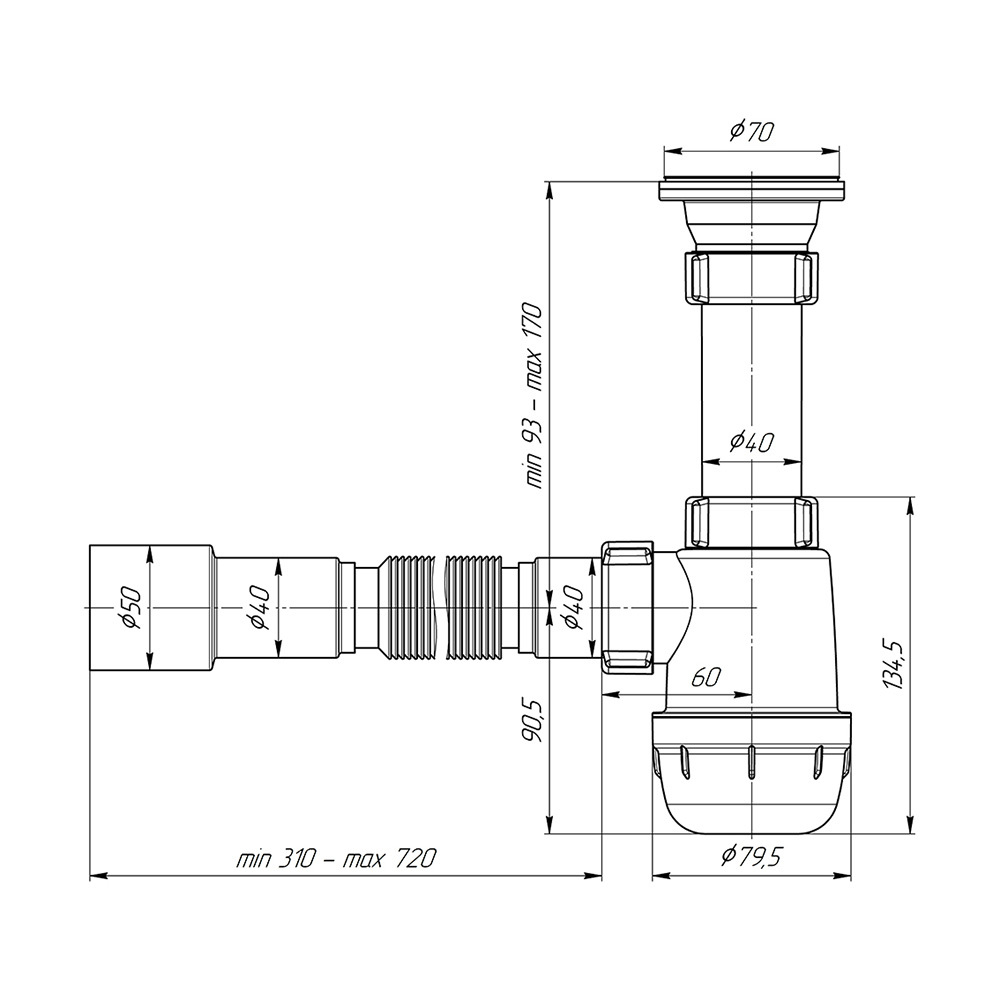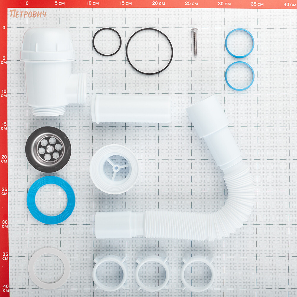 Комплектация: сифон, выпуск, гибкое соединение.