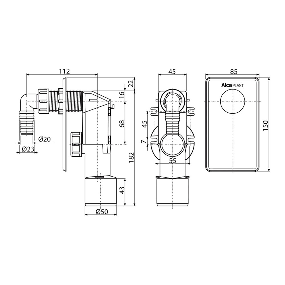 Сифон для стиральной машины Alcadrain скрытого монтажа белый (APS4)
