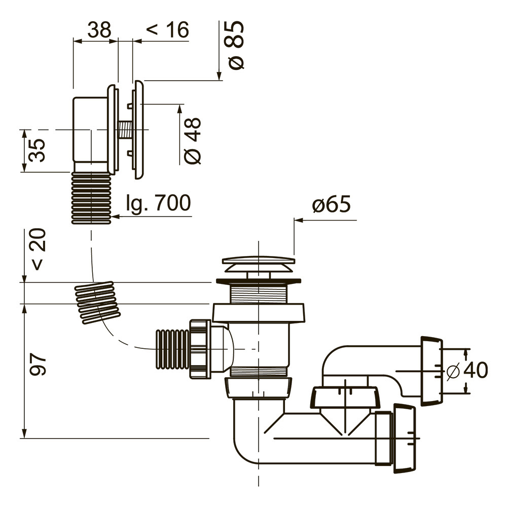 Комплектация: Сифон для ванной, выпуск перелива, выпуск слива, перелив, уплотнители.
