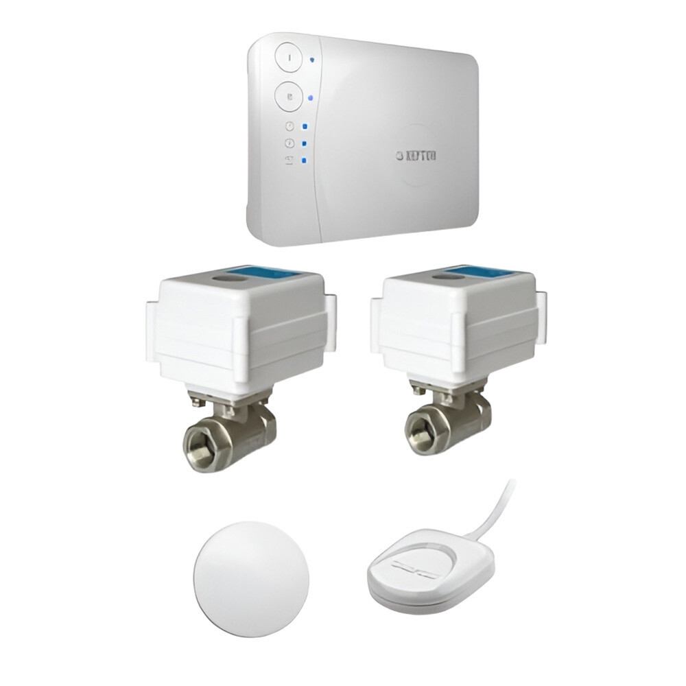 Комплектация: Модуль управления Neptun Smart Tuya - 1 шт., кран с электроприводом МК 12 В 3/4 - 2 шт., датчик контроля протечки воды SW007 - 1 шт., радиодатчик Neptun Smart 868.2 - 1 шт., блок питания - 1 шт.