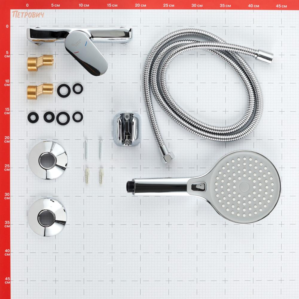 Комплектация: Смеситель, монтажный набор, душевой шланг, ручная лейка, держатель, инструкция по эксплуатации с гарантийным талоном.