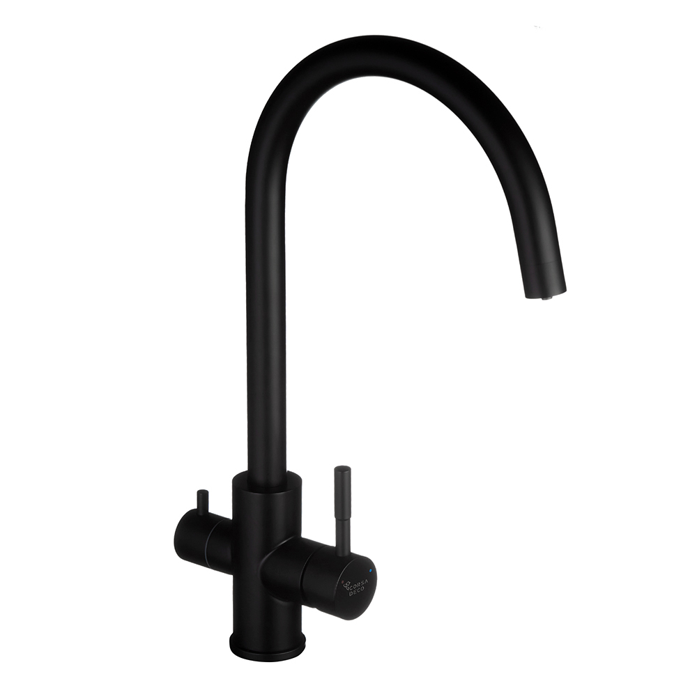 Смеситель для кухни Corsa Deco Pride черный с высоким изливом с подключением к фильтру однорычажный (966380)