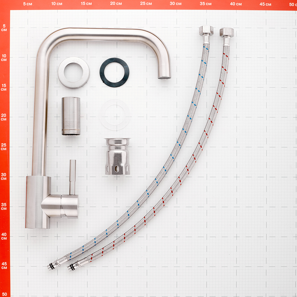 Комплектация: пьедестал (металл), ребро жесткости, крепление "FastFix", гибкая подводка 45 см.