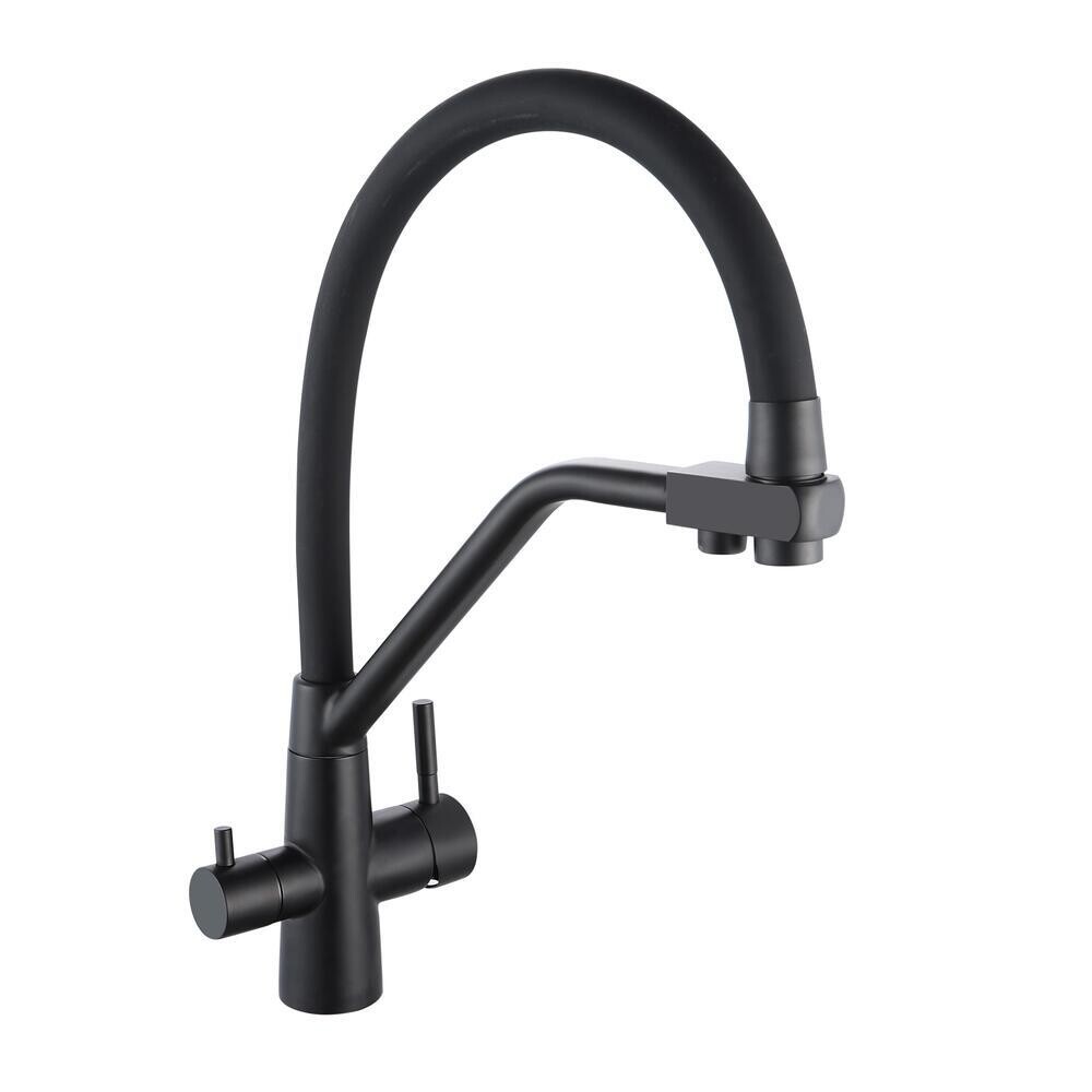 Смеситель для кухни РМС SUS127 черный гибкий излив с подключением к фильтру однорычажный (SUS127TBL-016F-015)
