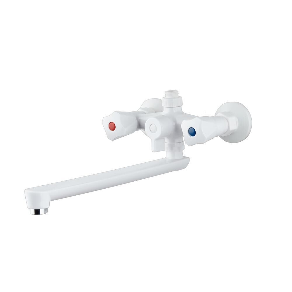 Смеситель для ванны РМС PL белый двухвентильный с длинным изливом без лейки (PL4-140P)