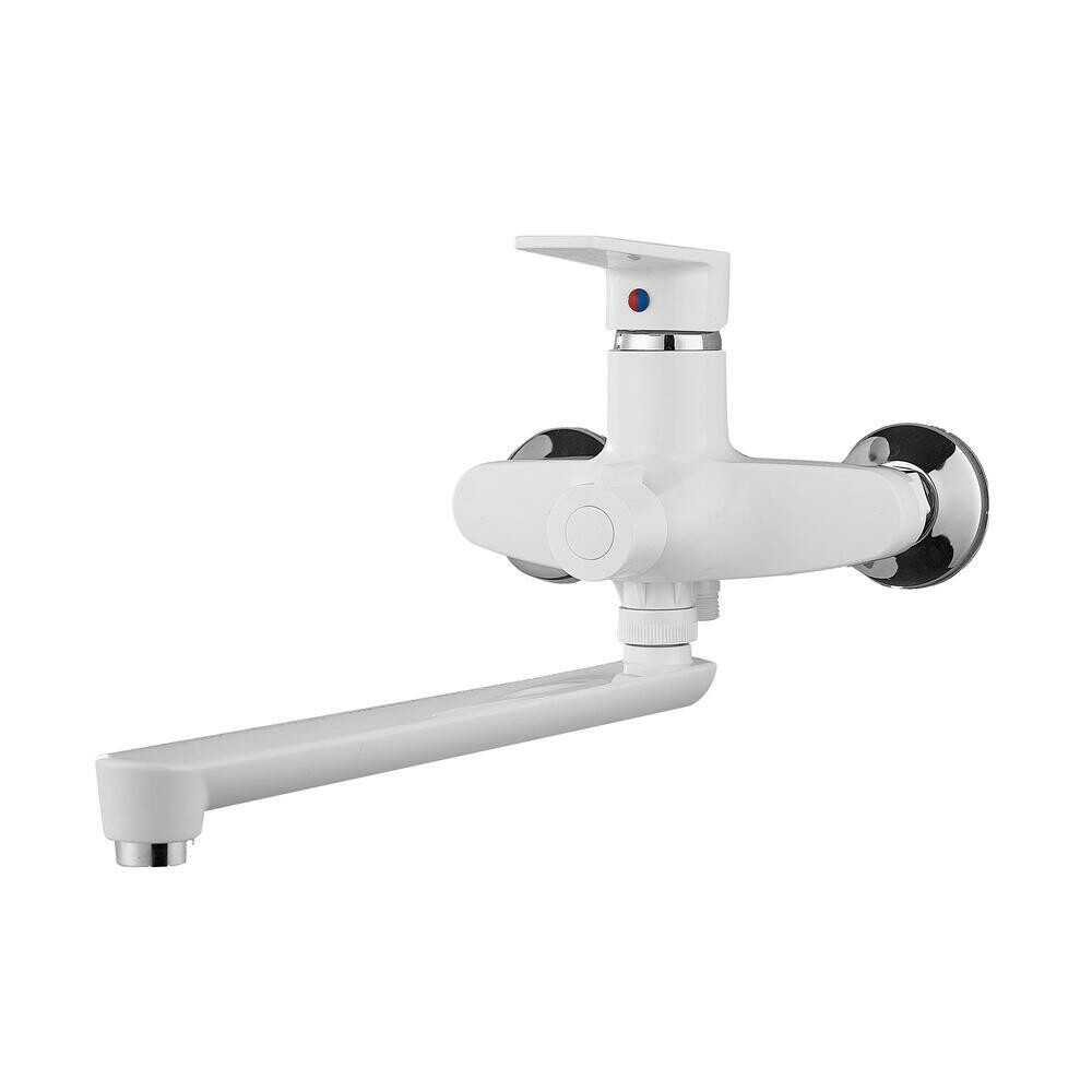Смеситель для ванны РМС PL белый однорычажный с длинным изливом без лейки (PL6-006E)