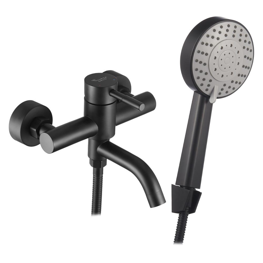 Смеситель для ванны Сorsa Deco NS черный однорычажный с коротким изливом с лейкой (FBTNS1B)