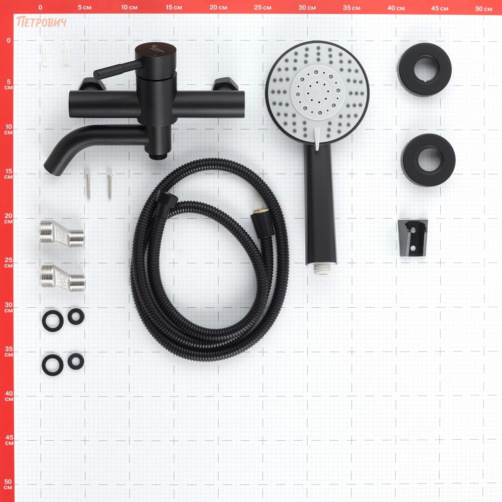 Комплектация: Смеситель, монтажный комплект, душевой шланг, ручная лейка, держатель, инструкция по эксплуатации с гарантийным талоном.