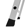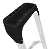 В основании стремянки прочная рама из алюминиевого профиля прямоугольного сечения. Пластиковые наконечники препятствуют скольжению, и обеспечивают отличную устойчивость. Многократное клепаное соединение ступеней с рамой обеспечивает исключительную надежность и безопасность при работе на стремянке. Имеет десять ступеней шириной 130 мм, что позволяет стопе комфортно размещаться на лестнице.
