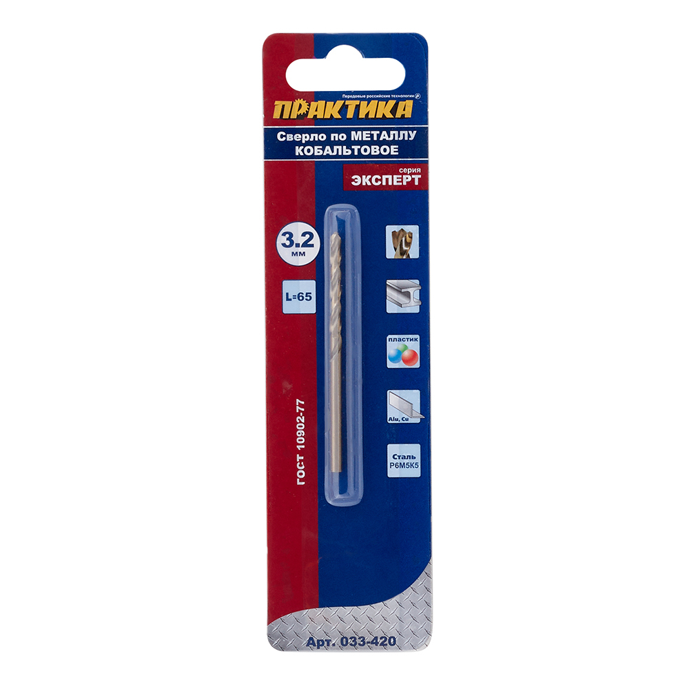 Сверло по металлу спиральное Практика 3,2х65 мм кобальтовое (033-420)