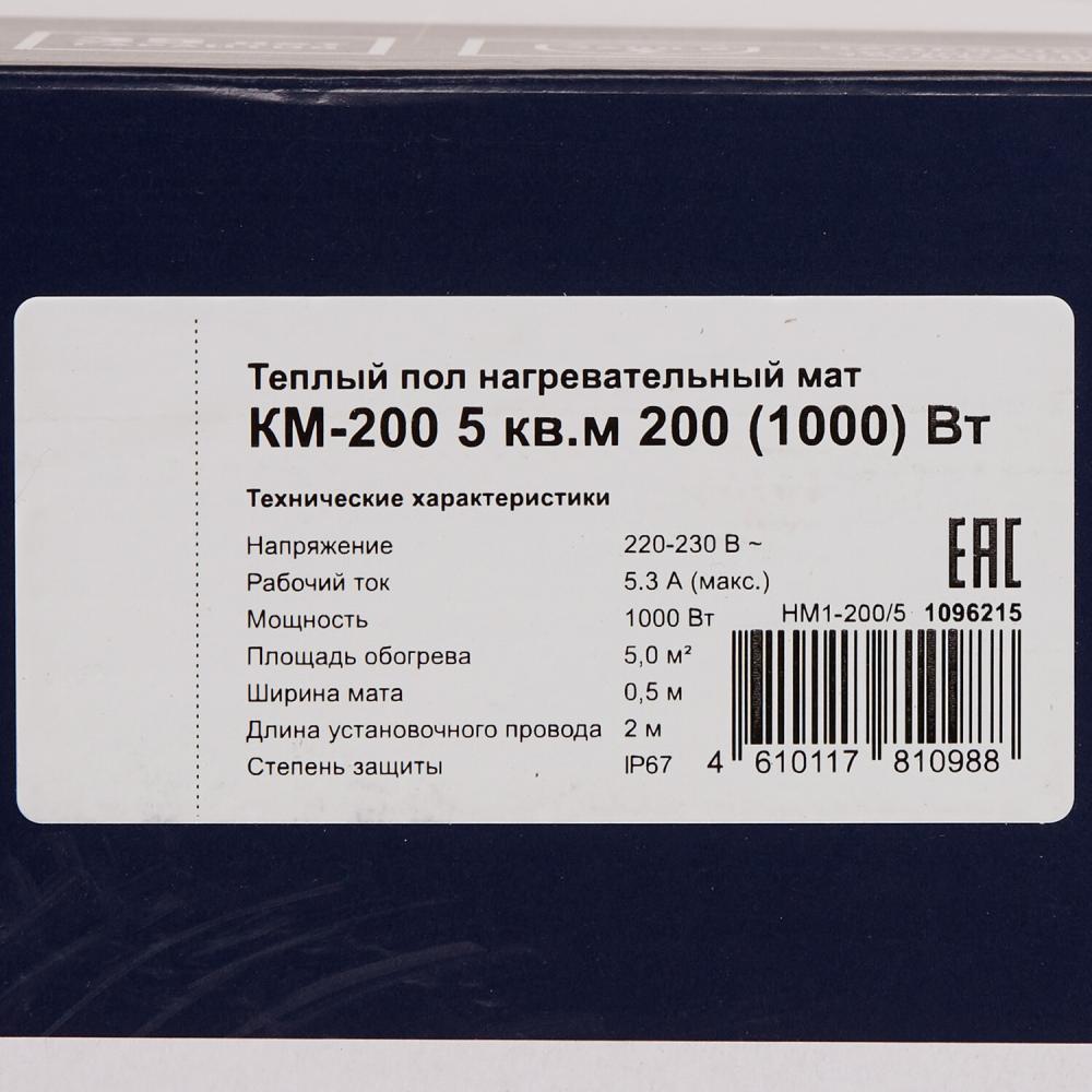 Теплый пол нагревательный мат КМ-200 5 кв.м 200 (1000) Вт