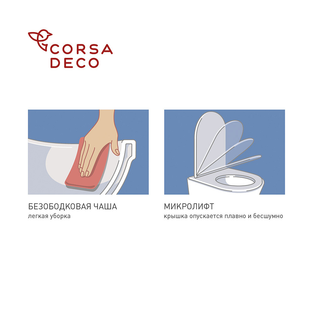 Унитаз подвесной Corsa Deco AX Rimless безободковый с сиденьем полипропилен микролифт (WHAX530RS)