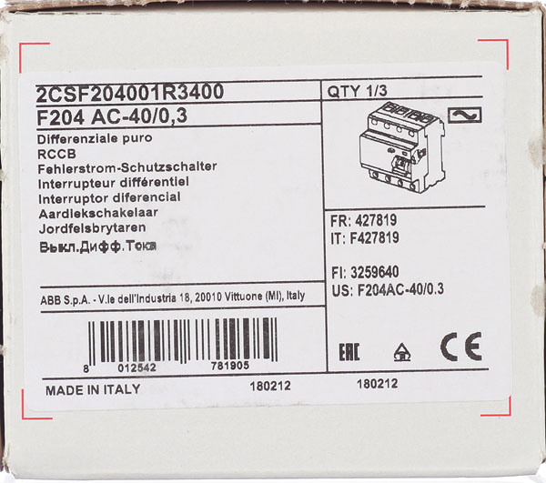 УЗО ABB S F204 40А 3P+N тип AC 300 мА 10 кА (2CSF204001R3400)