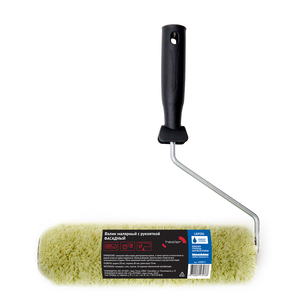 Валик полиакрил 250 мм d42 мм ворс 18 мм для водной основы с ручкой Hesler Leipzig