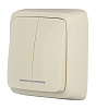 Выключатель Hegel Alfa двухклавишный накладной слоновая кость с подсветкой (ВА10-154-01)