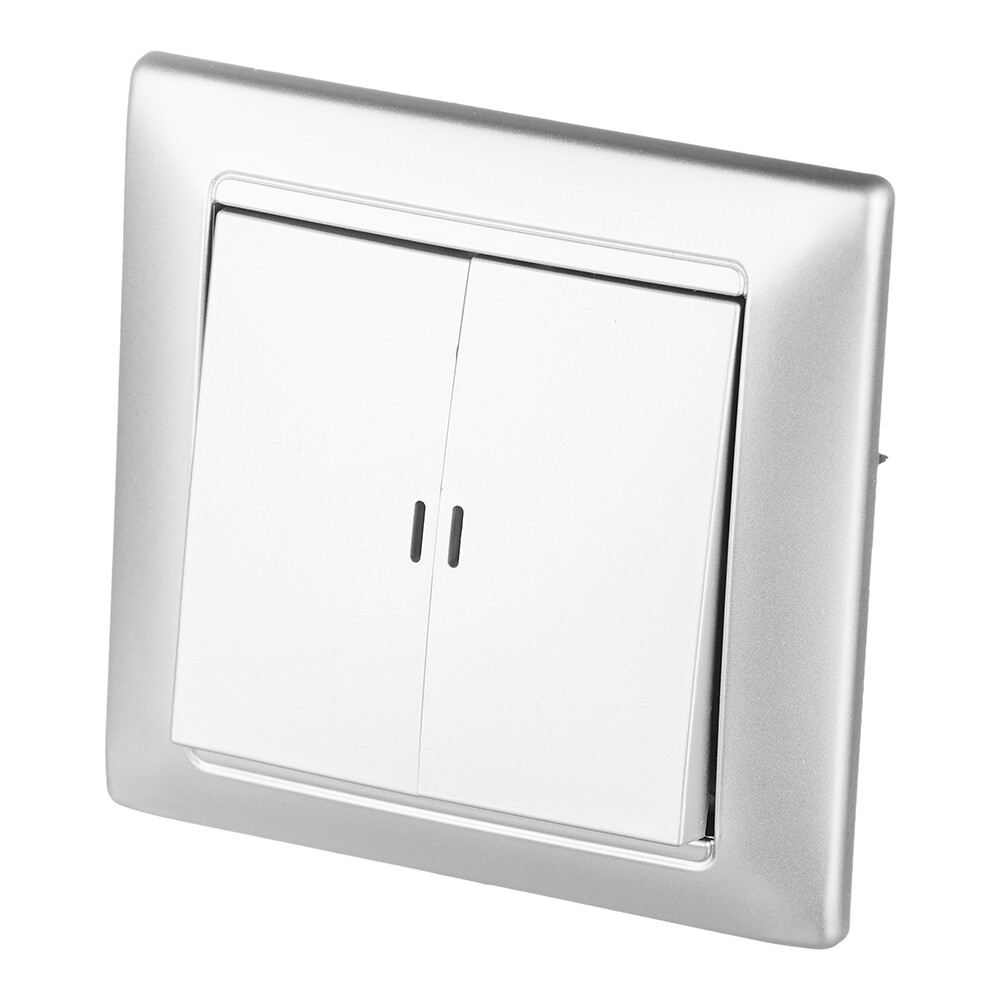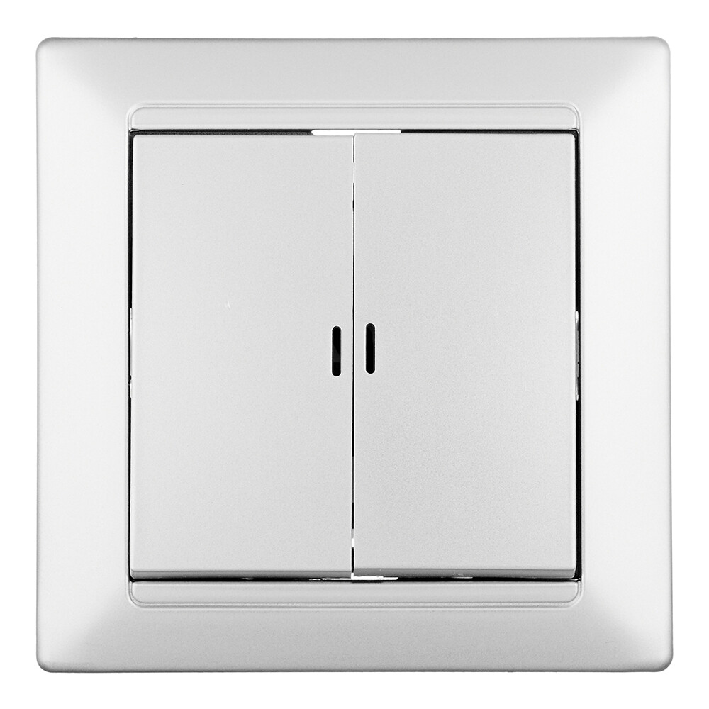 Выключатель Svet Стиль двухклавишный встраиваемый серебро с подсветкой (EV 0365-9128)