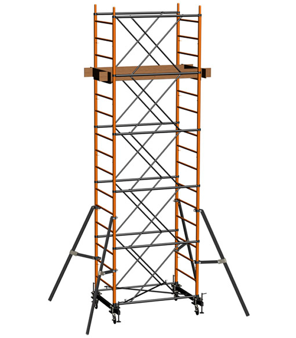 +7 (499) 653-95-87Передвижная вышка-тура - это вертикальная конструкция башенного типа на колесах, состоящая из базового блока и десяти промежуточных секций, с рабочей площадкой размером 2,0 х 0,8 м.