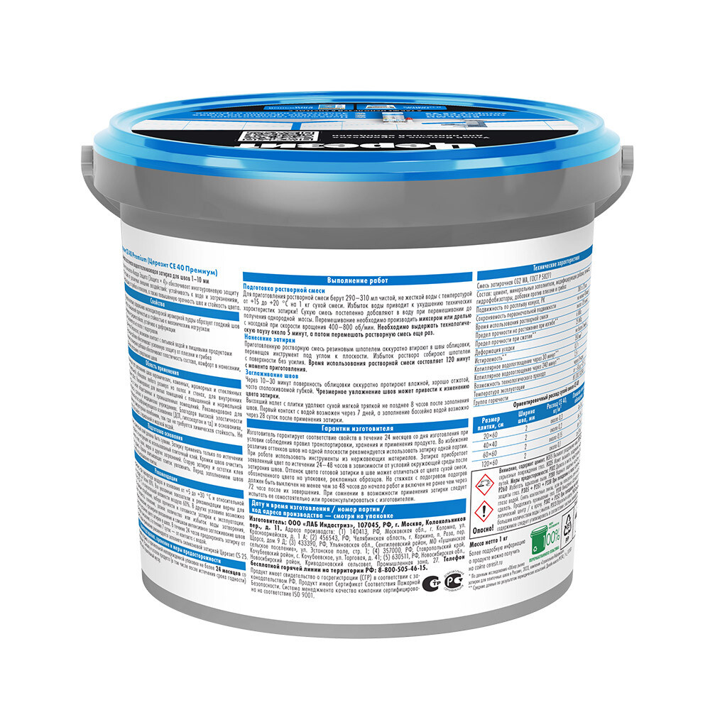 Затирка цементная Церезит CE 40 aquastatic 07 серая 1 кг