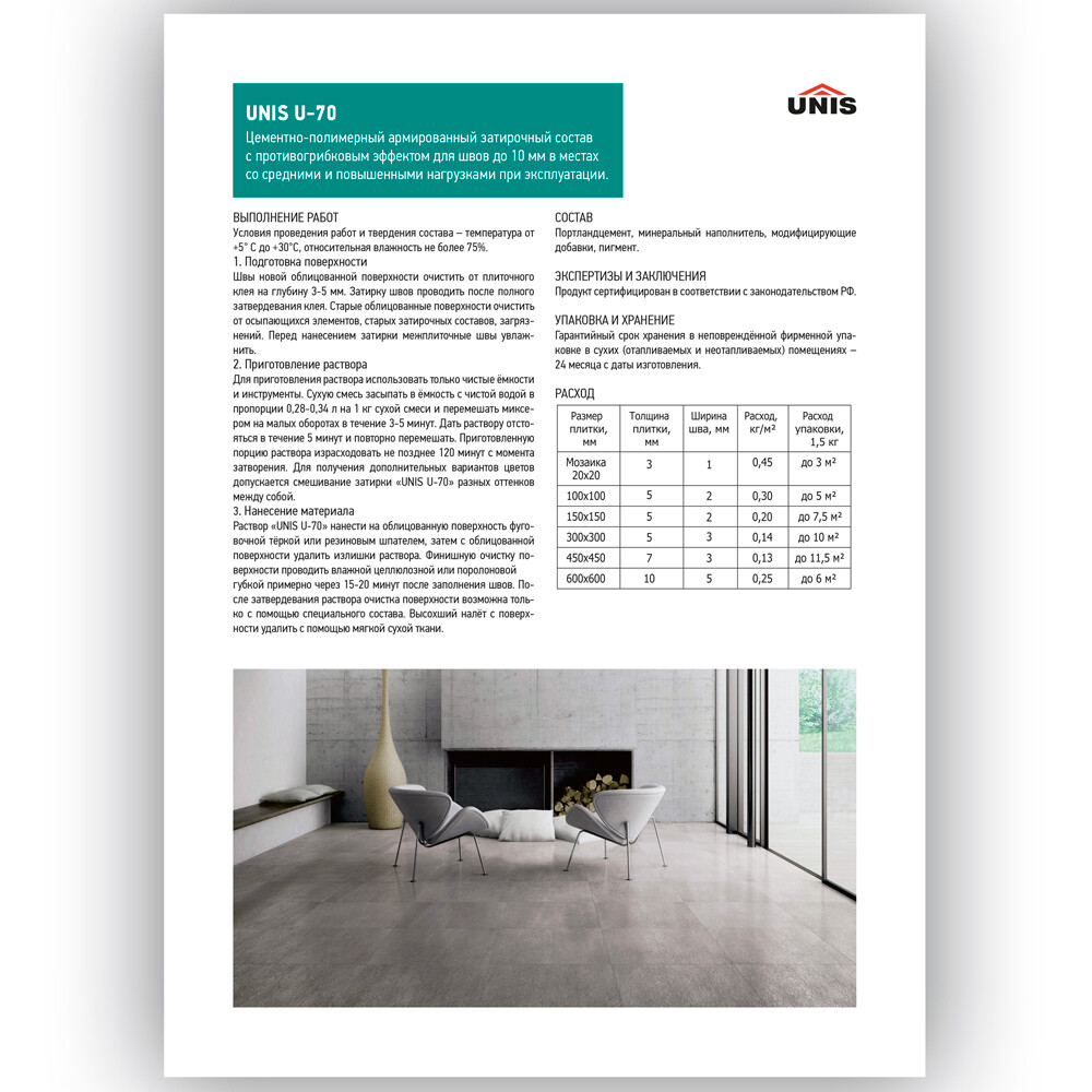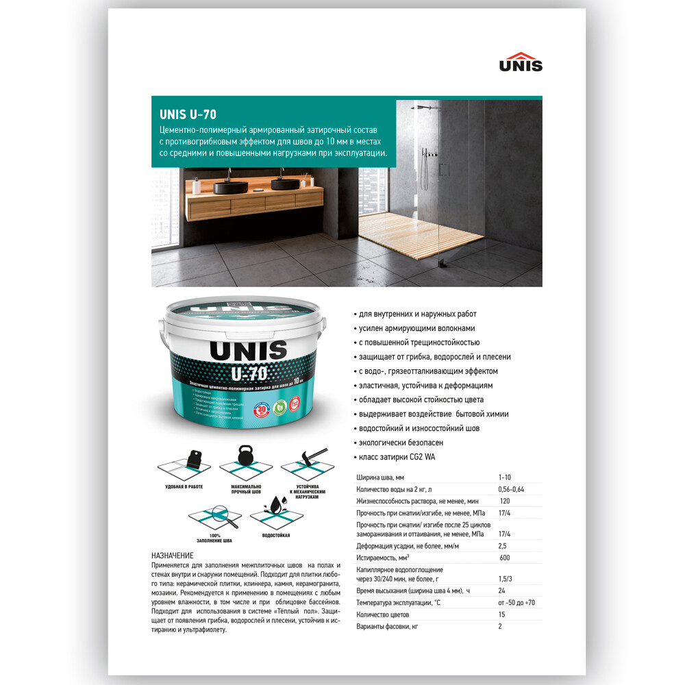 Затирка цементно-полимерная Unis U-70 С12 серебро 2 кг